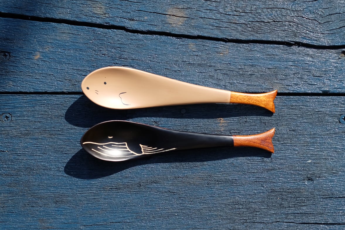 SOLD OUT 各サイズのスプーンに、漆でくじら/とっかりの絵付けをすることができます。